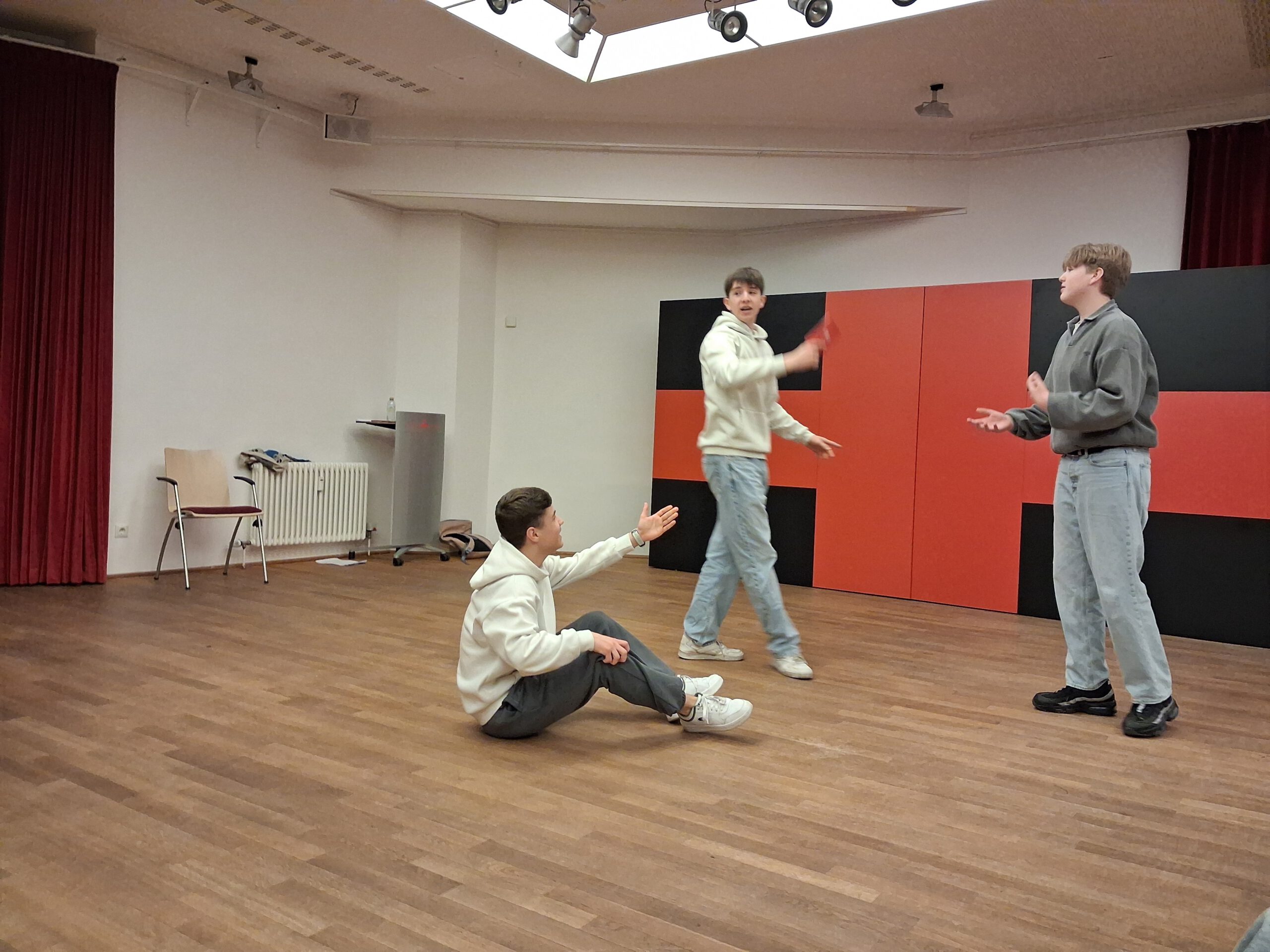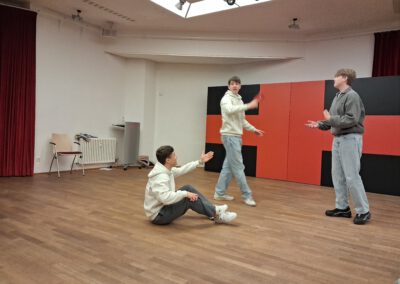 Eine kleine Gruppe kam beim Improtheater in Bewegung und probierte spielerisch ihre Spanischkenntnisse aus. Nach der Pause waren Stimme und Fantasie gefragt, um als Gruppe ein dadaistisches Musikstück auf Spanisch zu komponieren. Manzana, naranja, higo, ciruela, … Azúl, verde, negro, amarillo, …